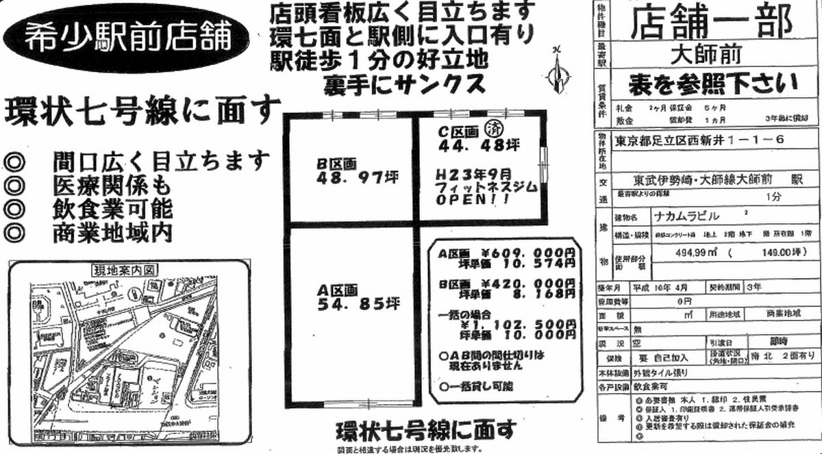 トップページ > 物件検索 > 足立区の賃貸事務所・貸店舗 > 大師前の賃貸事務所・貸店舗 > 足立区西新井1-1-6 ナカムラビル