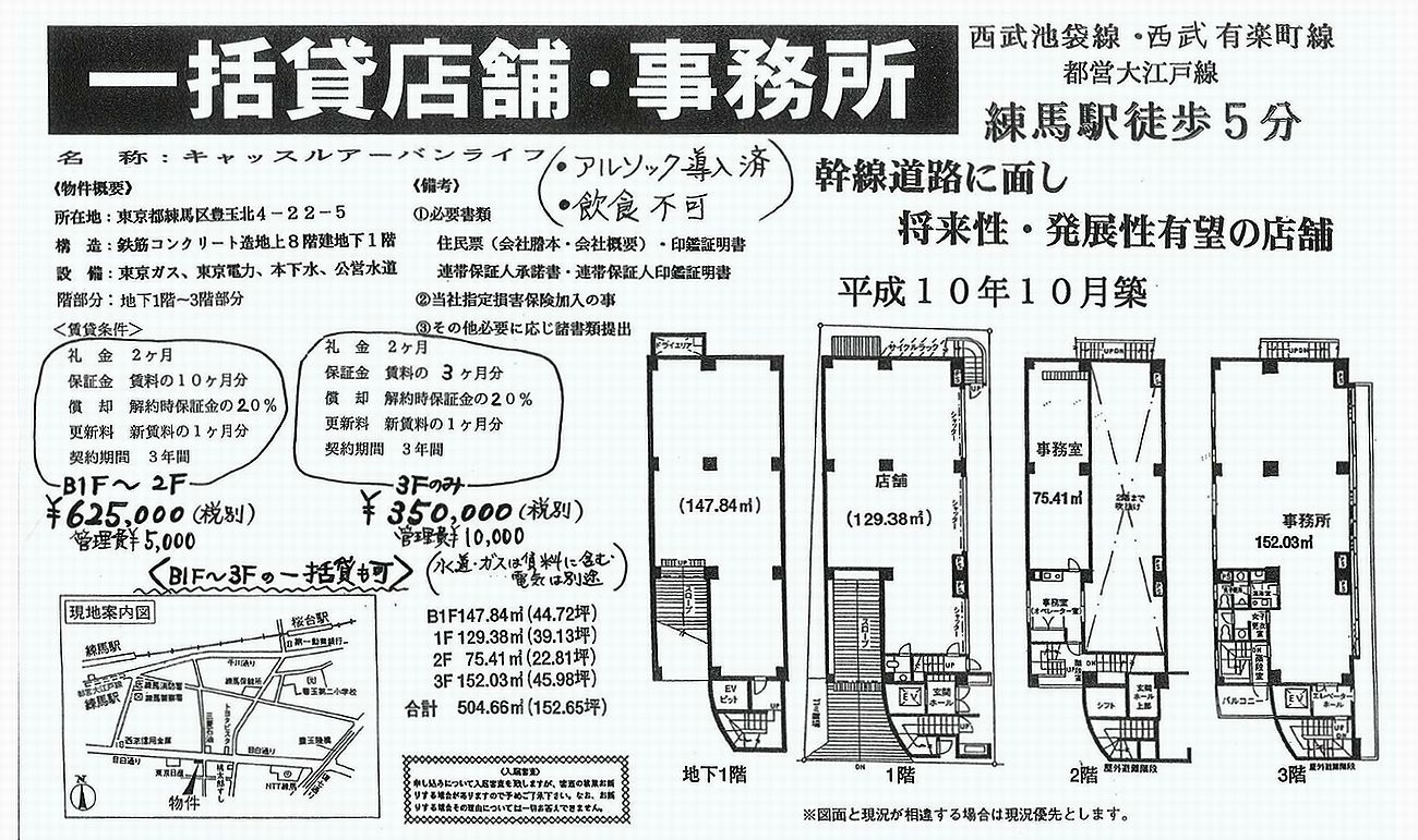 トップページ > 物件検索 > 東京都の賃貸事務所・貸店舗 > 練馬の賃貸事務所・貸店舗 > 練馬区豊玉北4-22-5 キャッスルアーバンライフ