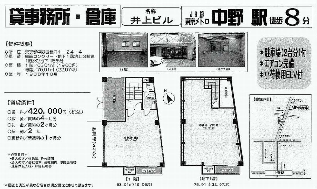 トップページ > 物件検索 > 中野区の賃貸事務所・貸店舗 > 中野の賃貸事務所・貸店舗 > 中野区新井1-24-4 井上ビル B1F-1F部分