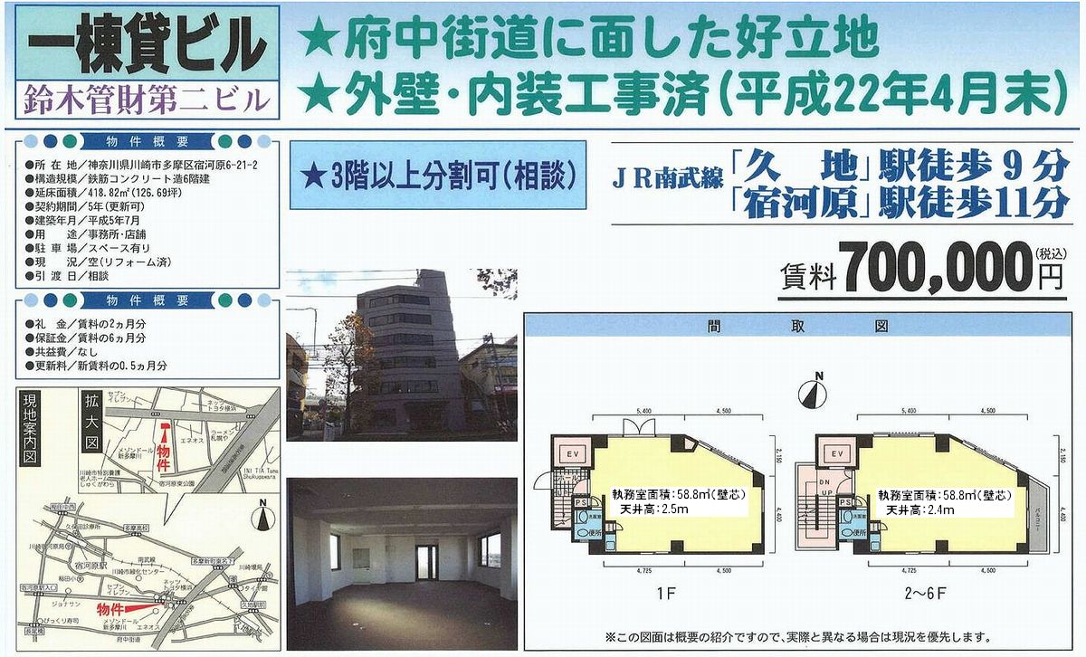川崎市多摩区宿河原6-21-2 鈴木管財第二ビル 一棟貸 詳細データ
