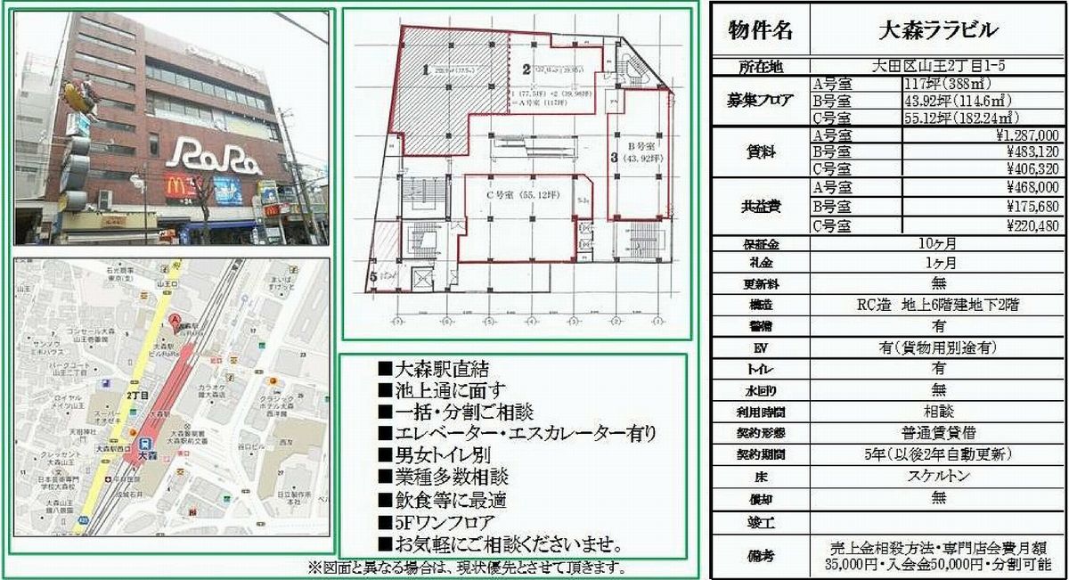 トップページ > 物件検索 > 大田区の賃貸事務所・貸店舗 > 大森の賃貸事務所・貸店舗 > 大田区山王2-1-5 大森ララビル