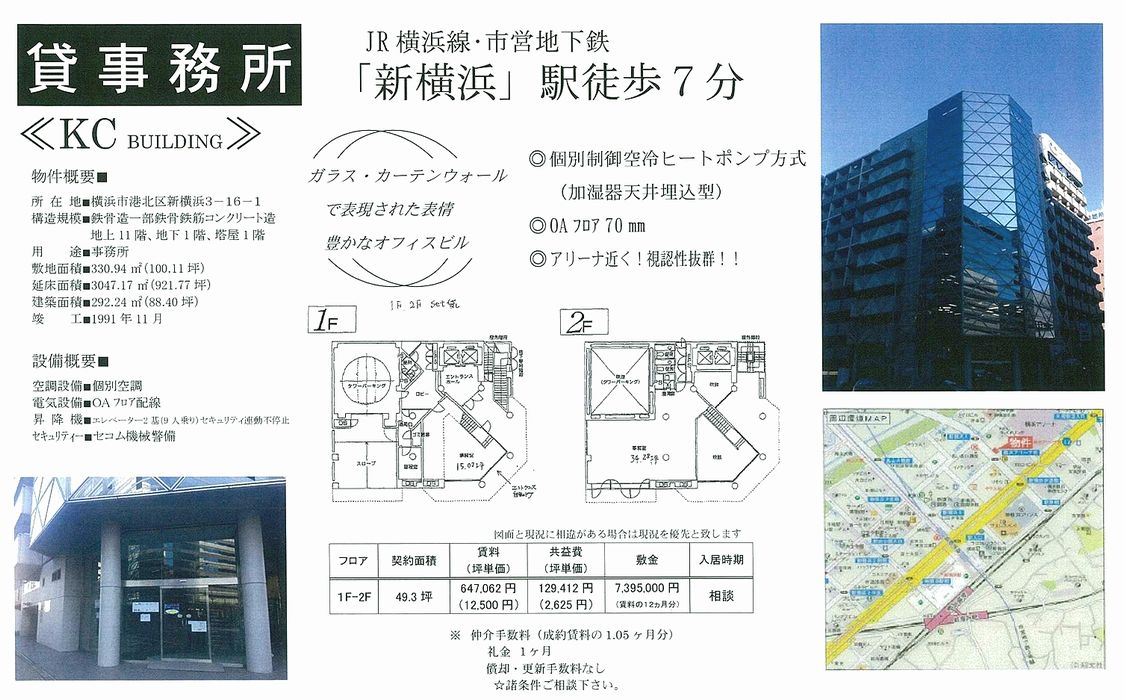 トップページ > 物件検索 > 横浜市の賃貸事務所・貸店舗 > 新横浜の賃貸事務所・貸店舗 > 横浜市港北区新横浜3-16-1 KCビル 1-2F部分