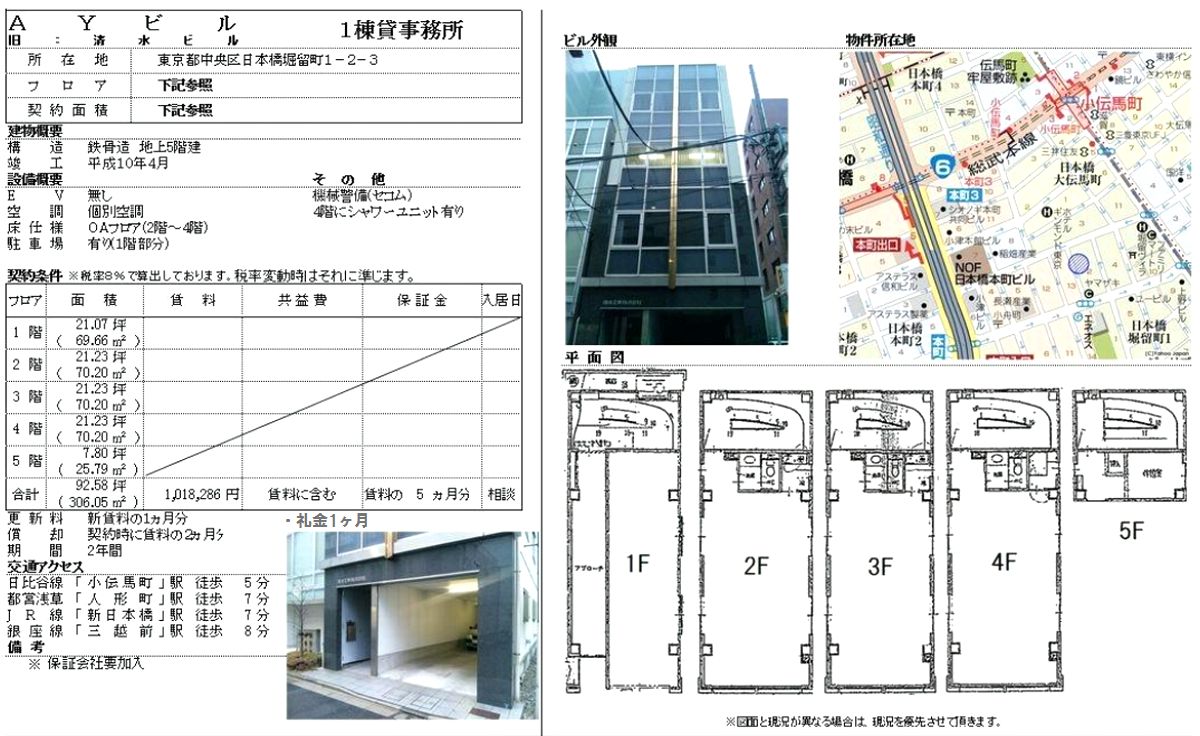 中央区日本橋堀留町1-2-3 AYビル 1棟貸ビル 詳細データ