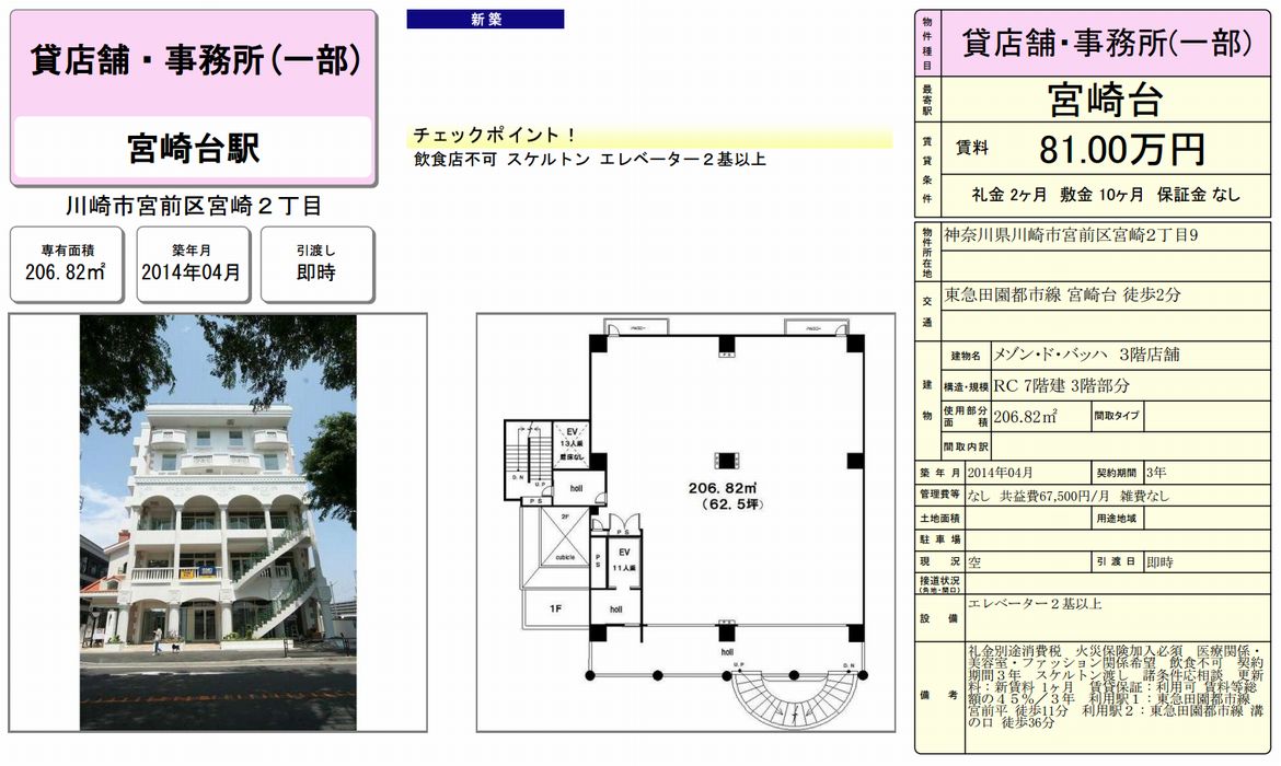 トップページ > 物件検索 > 川崎市の賃貸事務所・貸店舗 > 川崎市宮前区宮崎2-9 メゾン・ド・バッハ