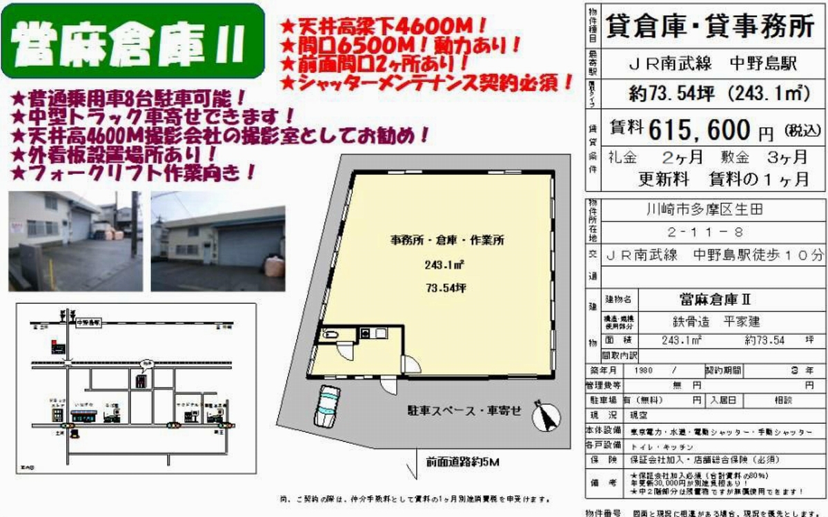 川崎市多摩区生田2-11-8 當間倉庫2 詳細データ