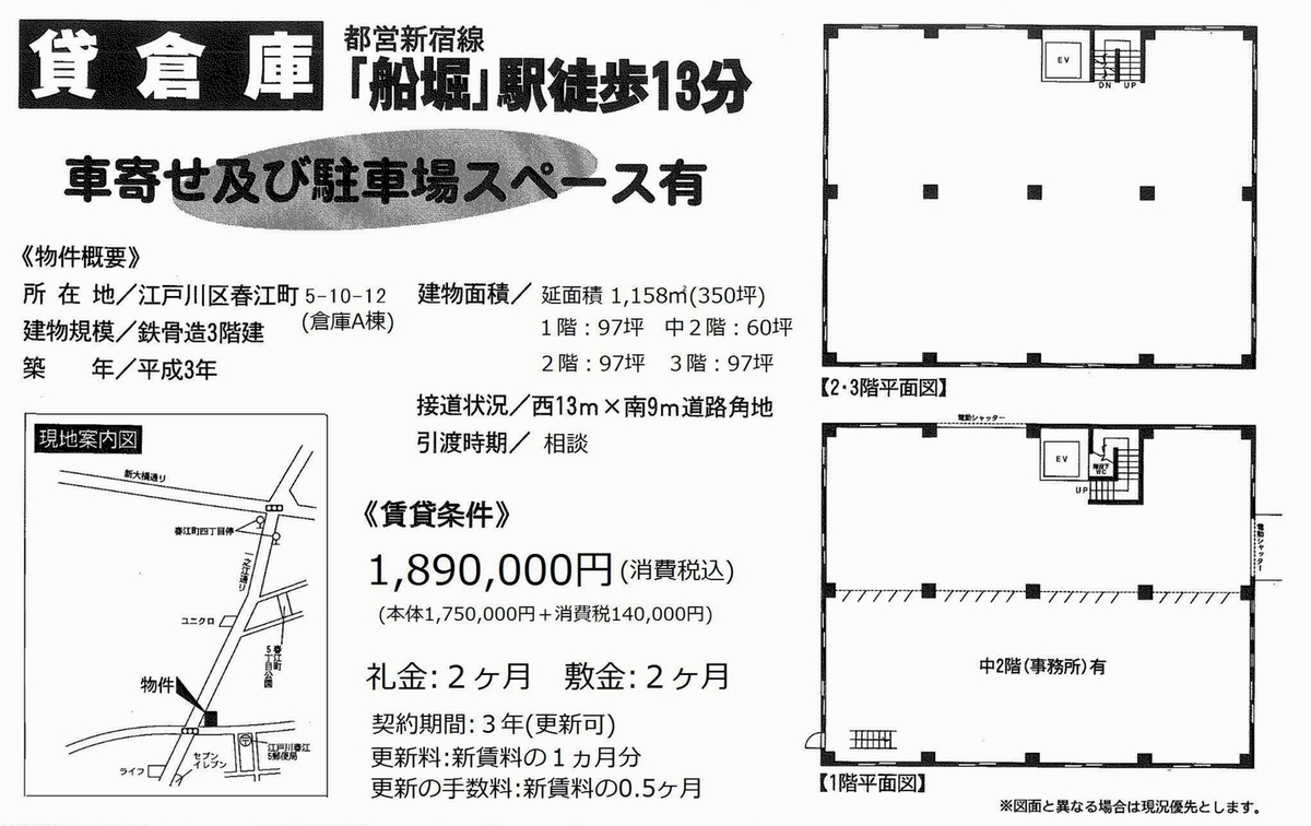 トップページ > 物件検索 > 江戸川区の賃貸事務所・貸店舗 > 船堀の賃貸事務所・貸店舗 > 江戸川区春江町5-10-12 船堀 店舗倉庫A棟 一棟貸