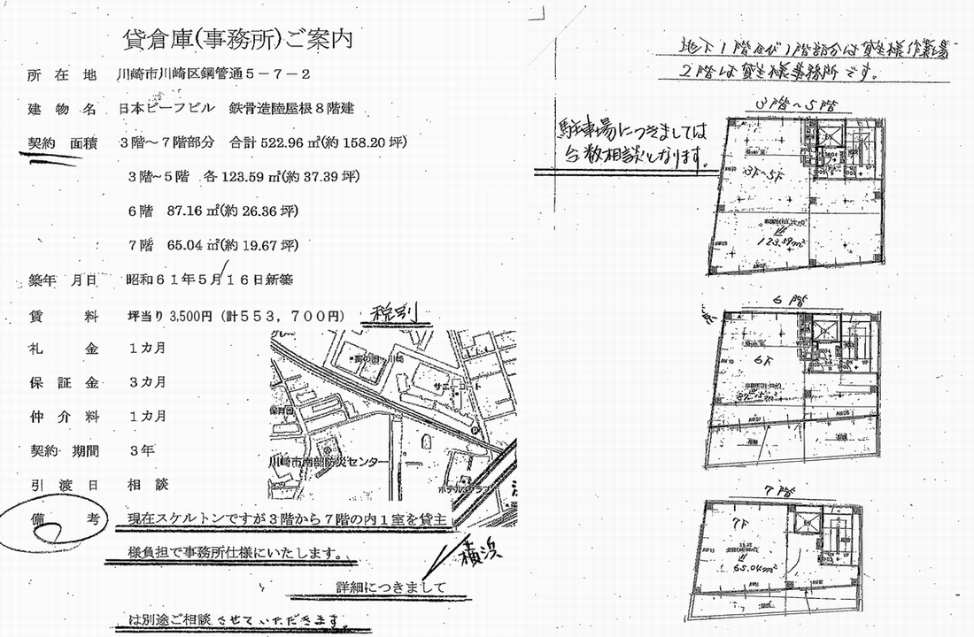 トップページ > 物件検索 > 川崎市の賃貸事務所・貸店舗 > 川崎市川崎区鋼管通5-7-2 日本ビーフビル 3-7階部分