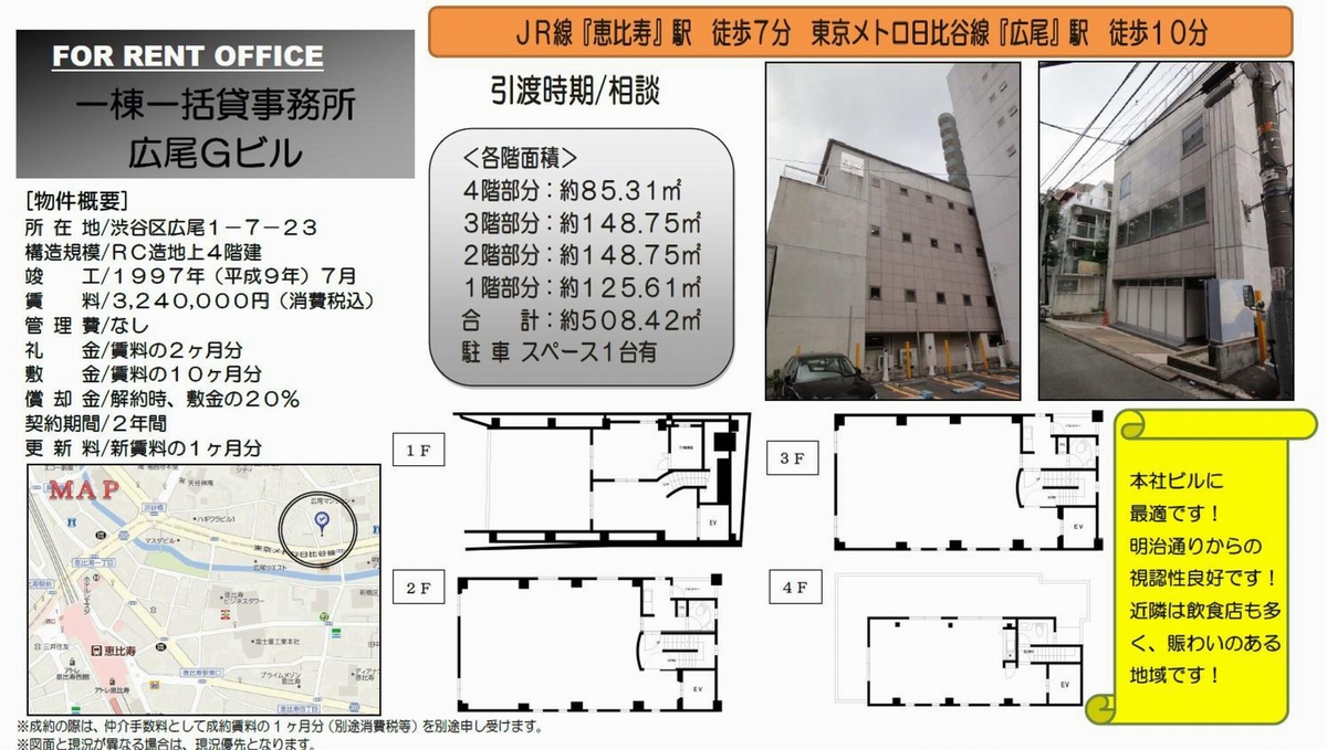 トップページ > 物件検索 > 渋谷区の賃貸事務所・貸店舗 > 恵比寿の賃貸事務所・貸店舗 > 渋谷区広尾1-7-23 広尾Gビル 1棟貸