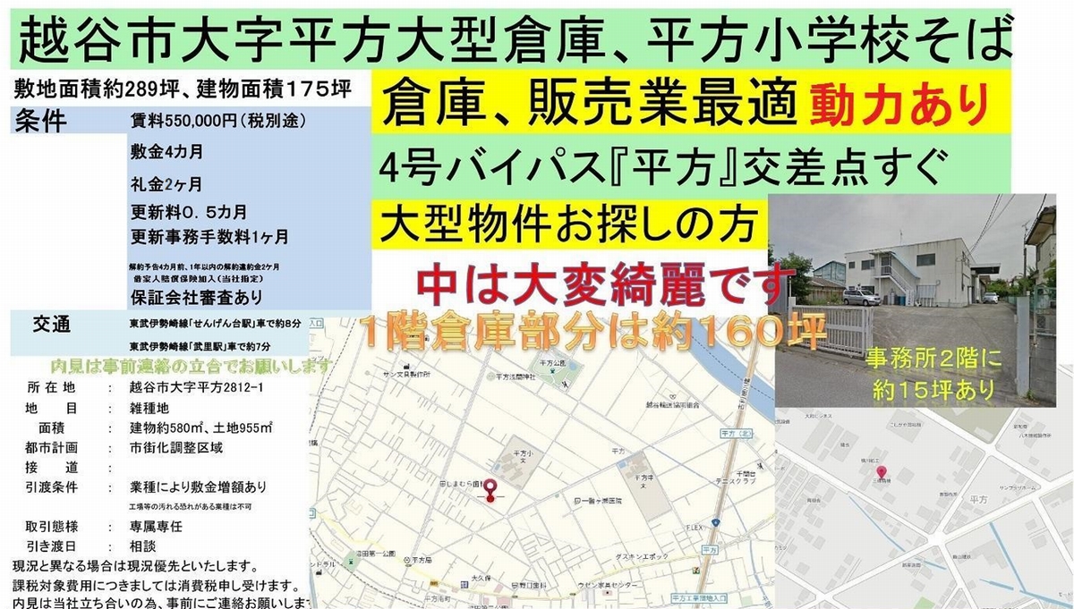 越谷市大字平方2812-1 せんげん台 店舗倉庫 詳細データ