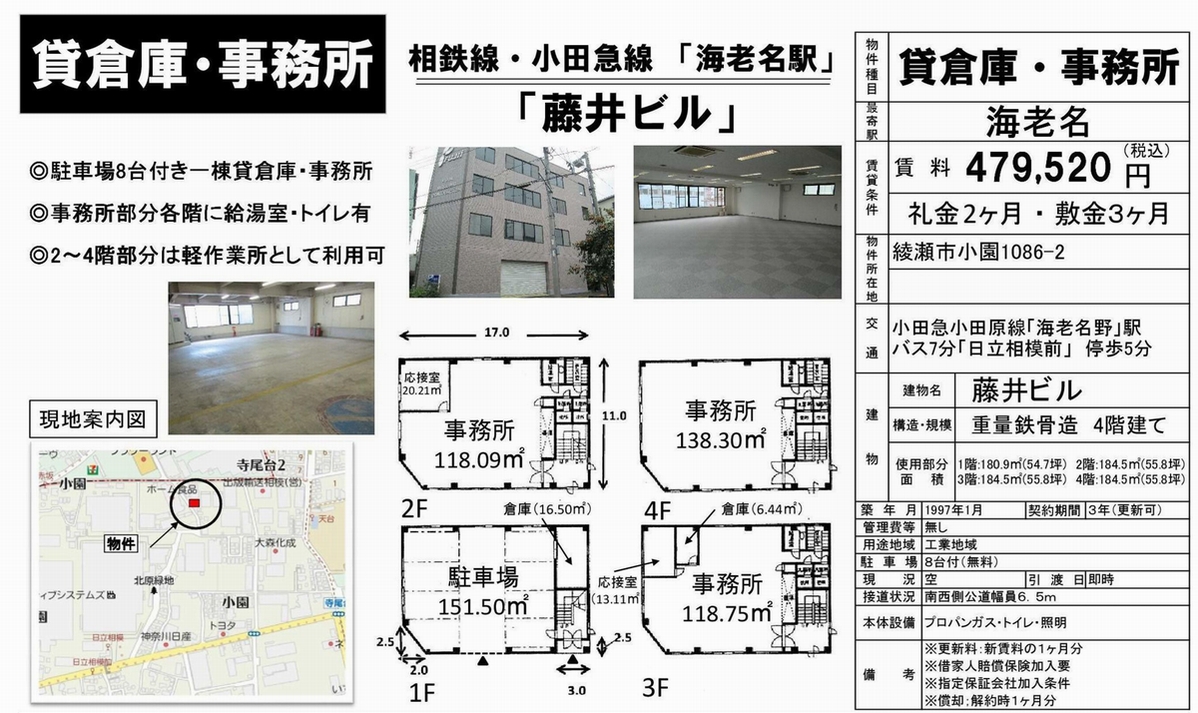 トップページ > 物件検索 > 神奈川県の賃貸事務所・貸店舗 > 海老名の賃貸事務所・貸店舗 > 綾瀬市小園1086-2 藤井ビル