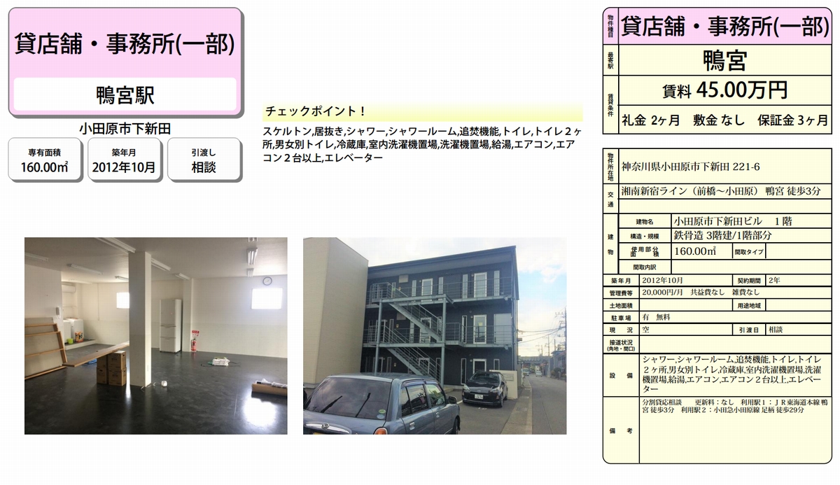 トップページ > 物件検索 > 神奈川県の賃貸事務所・貸店舗 > 小田原市下新田221-6 小田原市下新田ビル