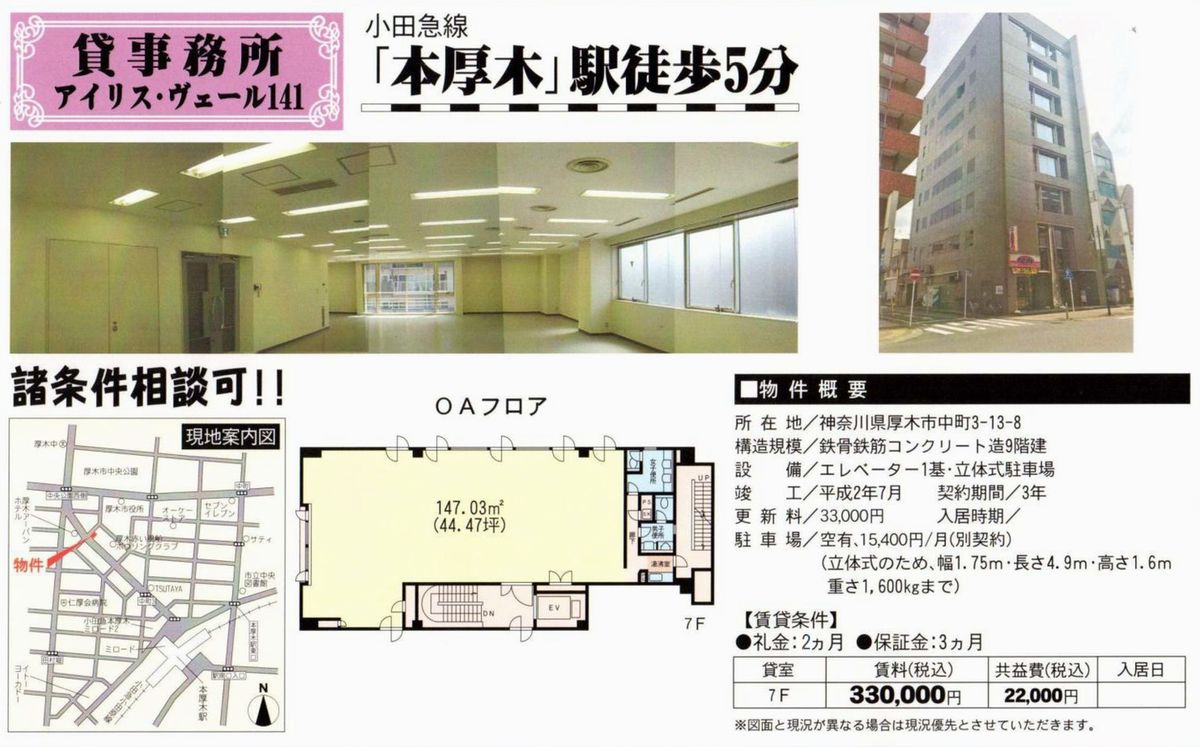 トップページ > 物件検索 > 神奈川県の賃貸事務所・貸店舗 > 本厚木の賃貸事務所・貸店舗 > 厚木市中町3-13-8 アイリス・ヴェール141