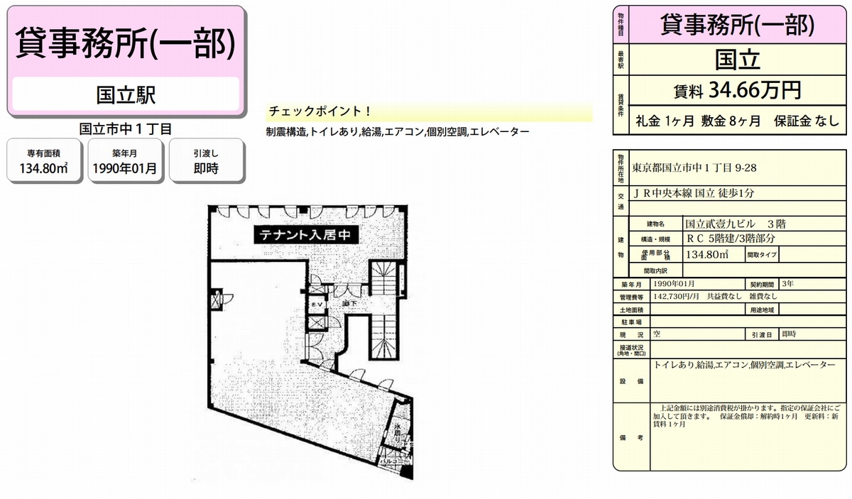貸事務所.bizでは、国立市中1-9-28をはじめ、渋谷区・新宿区・中央区・港区・千代田区・目黒区・品川区・文京区・台東区・豊島区等、東京エリア全域から横浜・川崎を中心に神奈川県の貸事務所・賃貸オフィス・貸店舗の情報が満載です。 国立市中1-9-28の貸ビル・ショールーム・営業所・物販など、店舗系の貸事務所・賃貸オフィスもらくらく検索できます。 SOHOから100坪以上の大型貸事務所まで、国立市中1-9-28エリア物件数No.1の貸事務所.bizにお任せ下さい。 その他、国立市中1-9-28に貸事務所・貸店舗・貸ビルを所有のオーナー様には物件登録システムにより、無料で広告を掲載し、スピーディーにテナント様を誘致いたします。 貸事務所・貸店舗の移転手続き、オフィスのレイアウトや内装工事等のサポートも承っておりますので貸したい方も借りたい方も、貸事務所.bizに是非ご相談下さい。 |