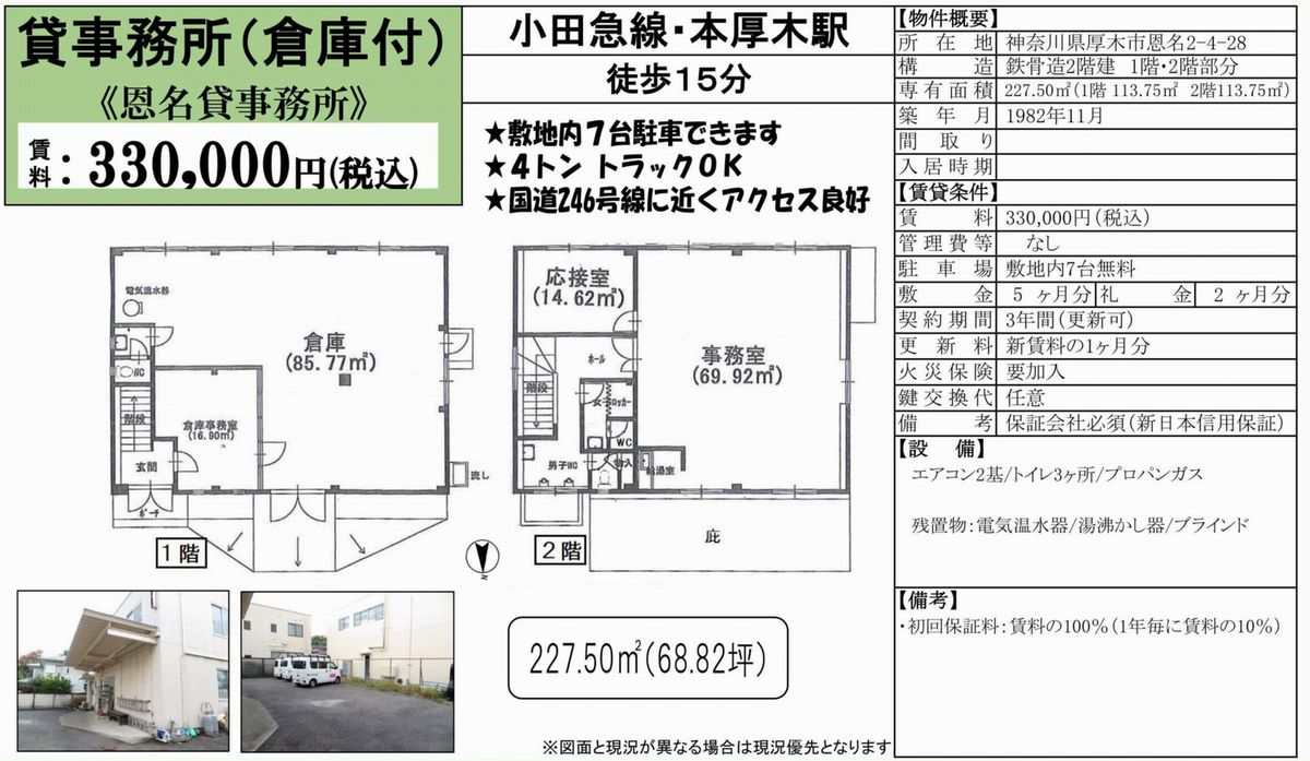 厚木市恩名2-4-28 恩名貸事務所 1-2F部分 P7台付 詳細データ