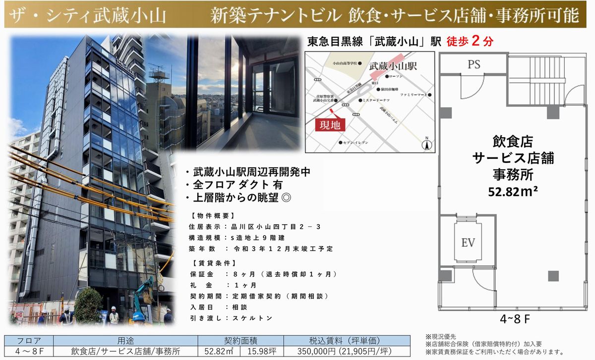 トップページ > 物件検索 > 品川区の賃貸事務所・貸店舗 > 武蔵小山の賃貸事務所・貸店舗 > 品川区小山4-2-3 ザ・シティ武蔵小山