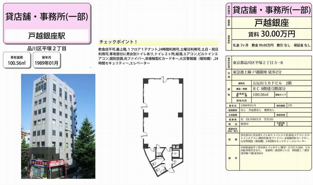 トップページ > 物件検索 > 品川区の賃貸事務所・貸店舗 > 戸越銀座の賃貸事務所・貸店舗 > 品川区平塚2-5-8 五反田ミカドビル