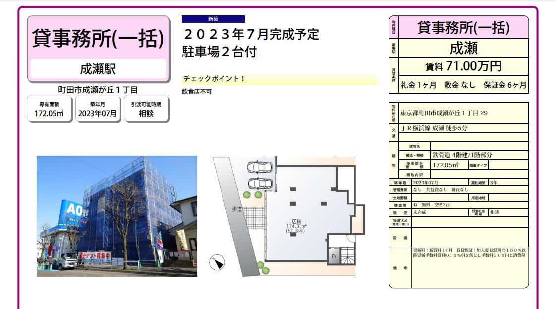 町田市成瀬が丘1-29 成瀬 貸事務所 詳細データ