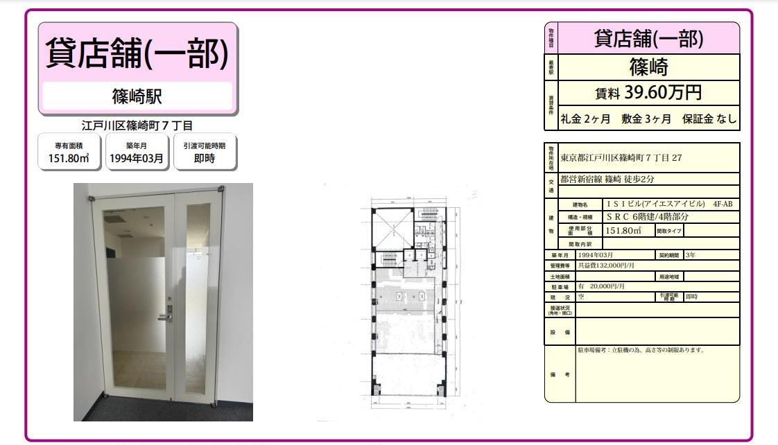 江戸川区篠崎町7-27 ISIビル(アイエスアイビル)部屋番号:4F-AB 詳細データ
