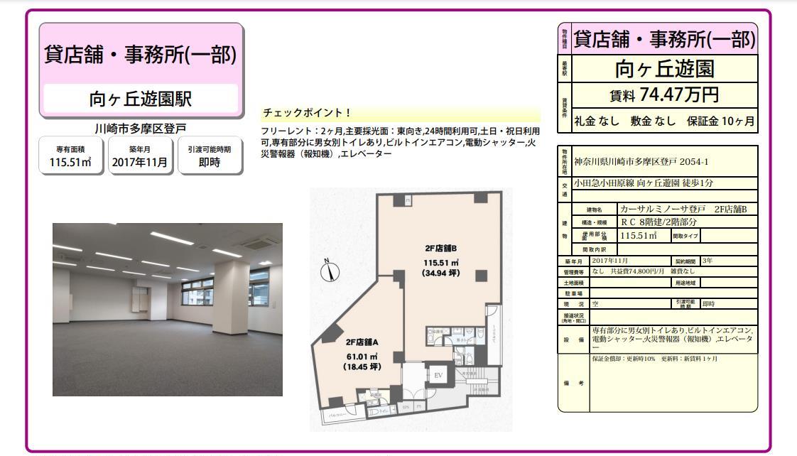 | 物件名 | カーサルミノーサ登戸部屋番号:2F店舗B |