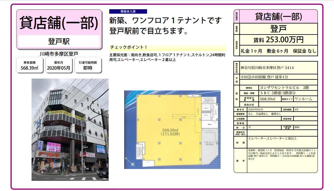 トップページ > 物件検索 > 川崎市の賃貸事務所・貸店舗 > 登戸の賃貸事務所・貸店舗 > 川崎市多摩区登戸3414 ヨシザワセントラルビル部屋番号:3階