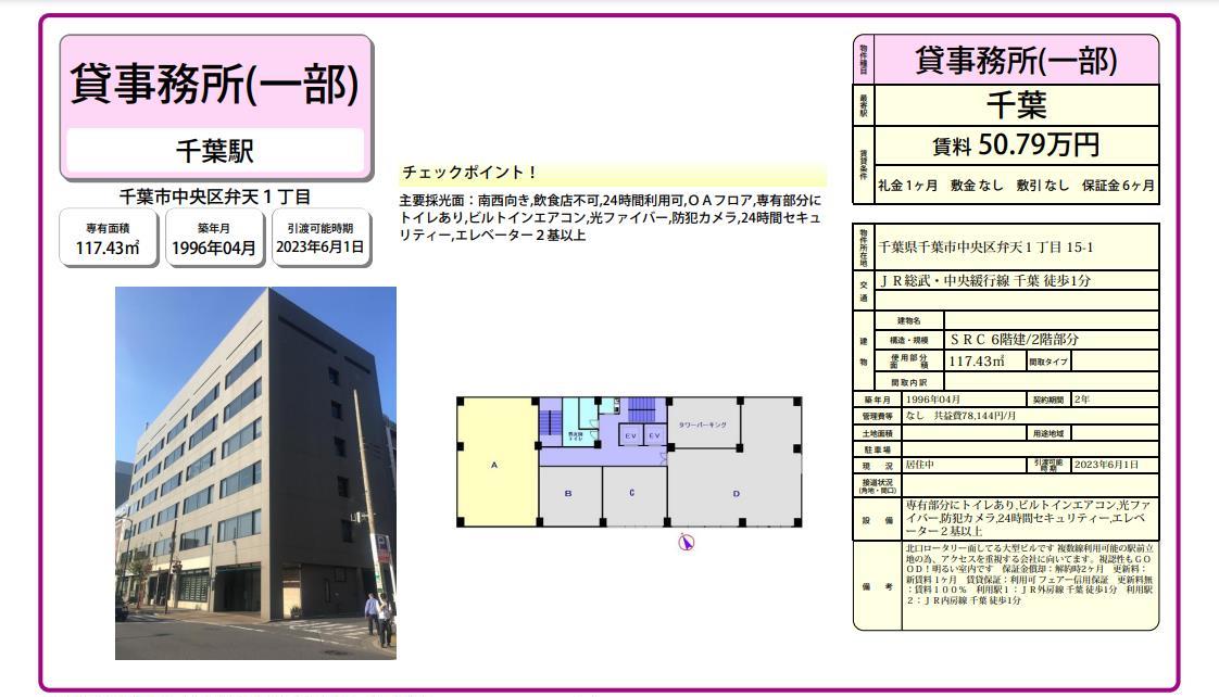 千葉市中央区弁天1-15-1 千葉 貸事務所 詳細データ