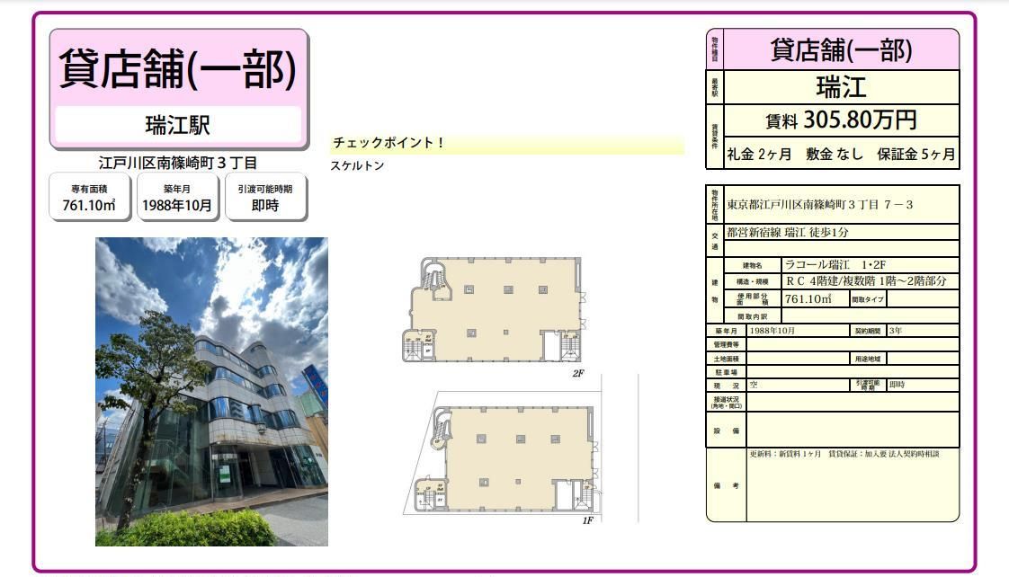 | 物件名 | ラコール瑞江部屋番号:1・2F |