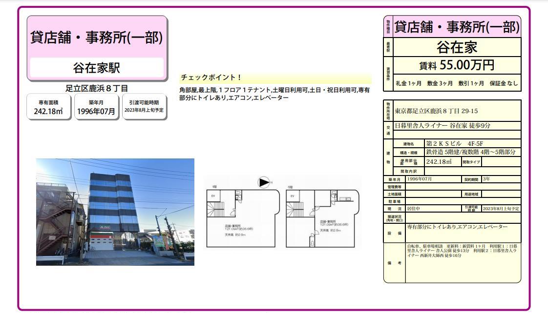 足立区鹿浜8-29-15 第2KSビル部屋番号:4F-5F 詳細データ
