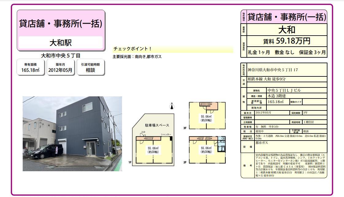 トップページ > 物件検索 > 神奈川県の賃貸事務所・貸店舗 > 大和の賃貸事務所・貸店舗 > 大和市中央5-17 中央5丁目LJビル