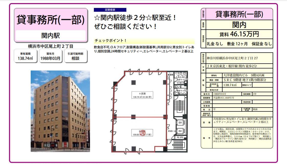 | 物件名 | 大洋建設関内ビル |