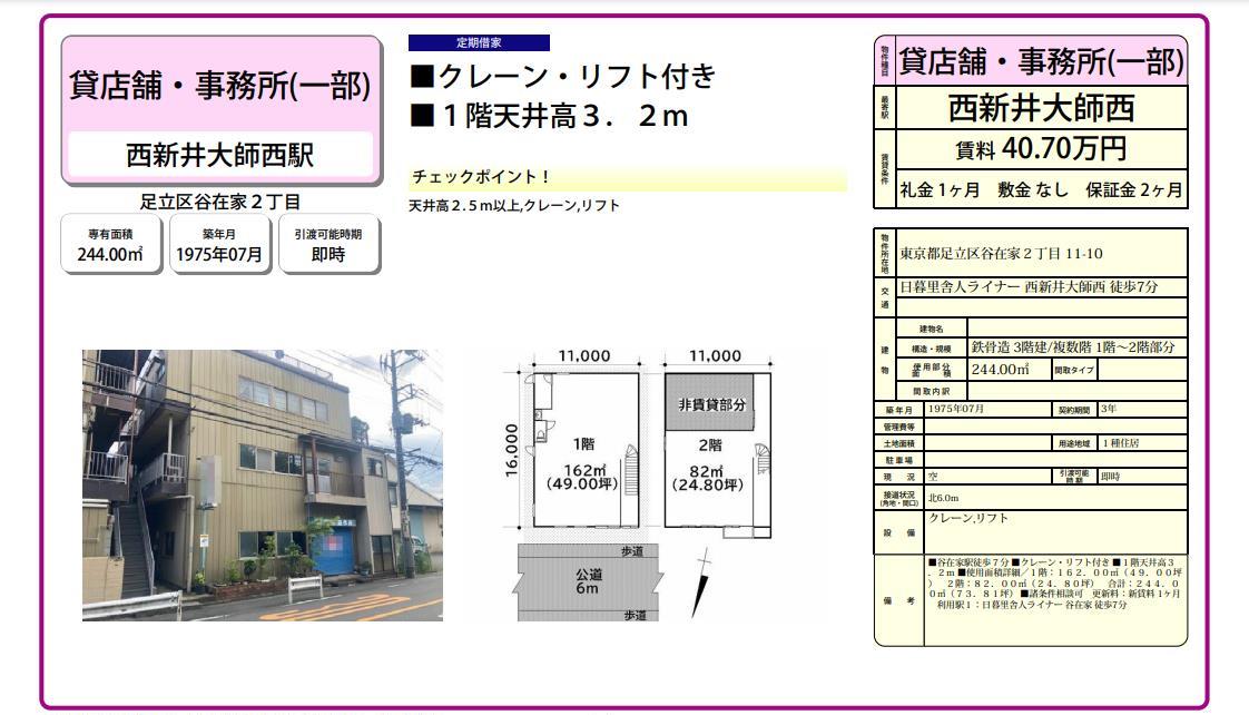 足立区谷在家2-11-10 西新井大師西 事務所 詳細データ