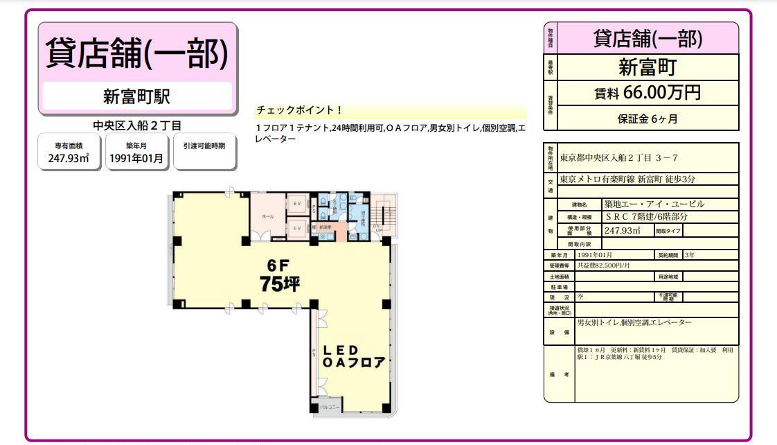 トップページ > 物件検索 > 中央区の賃貸事務所・貸店舗 > 新富町の賃貸事務所・貸店舗 > 中央区入船2-3-7 築地エー・アイ・ユービル