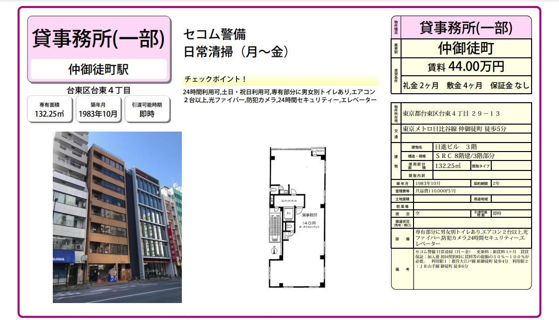 トップページ > 物件検索 > 台東区の賃貸事務所・貸店舗 > 台東区台東4-29-13 日進ビル