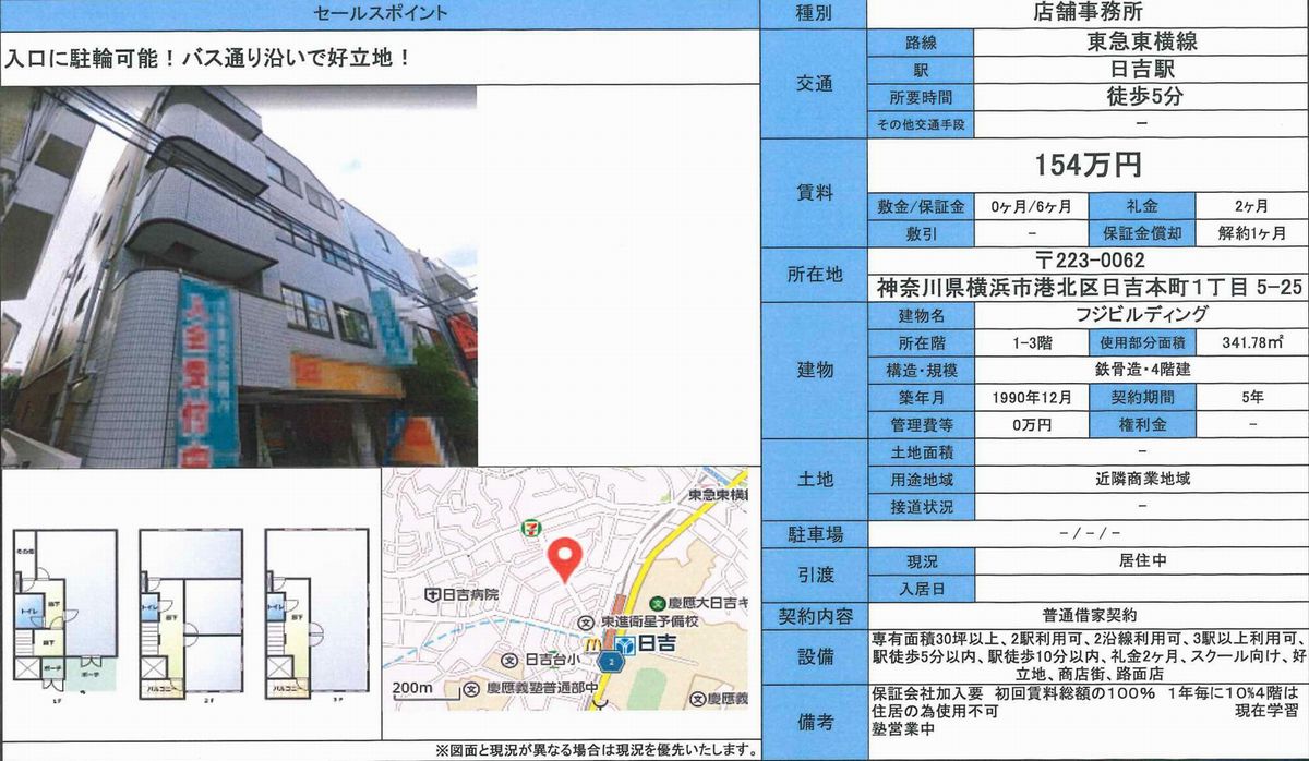横浜市港北区日吉本町1-5-25 フジビルディング 1-3F部分 詳細データ