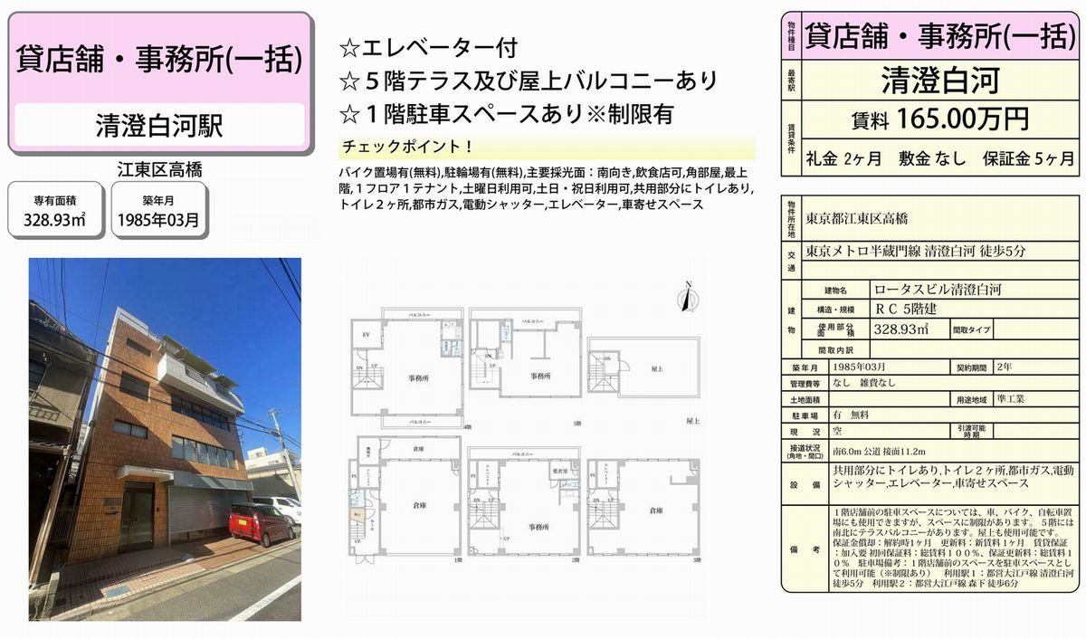 江東区高橋7-13 ロータスビル清澄白河 一棟貸 詳細データ