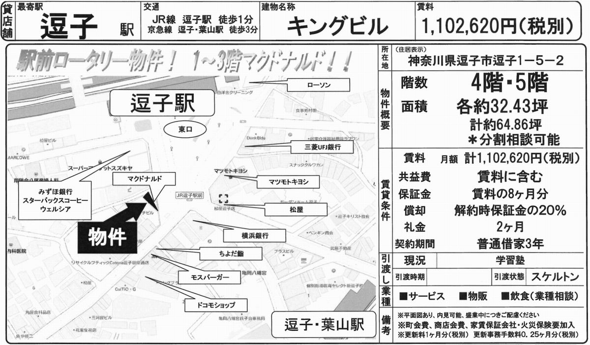 逗子市逗子1-5-2 キングビル 4-5F部分 詳細データ